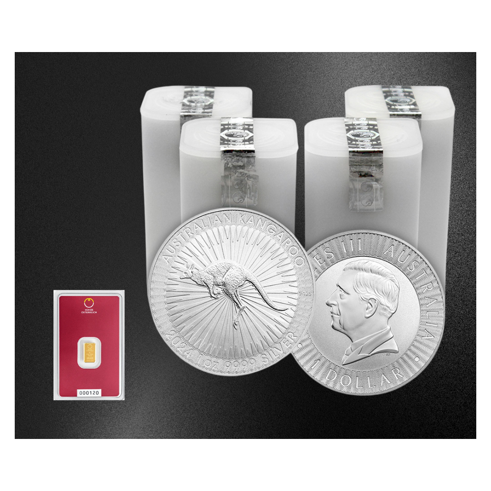 Supplied: 4 x sealed Kangaroo tube + 1g gold bar as a gift ( Münze Österreich, Argor-Heraeus, Valcambi, Germania)